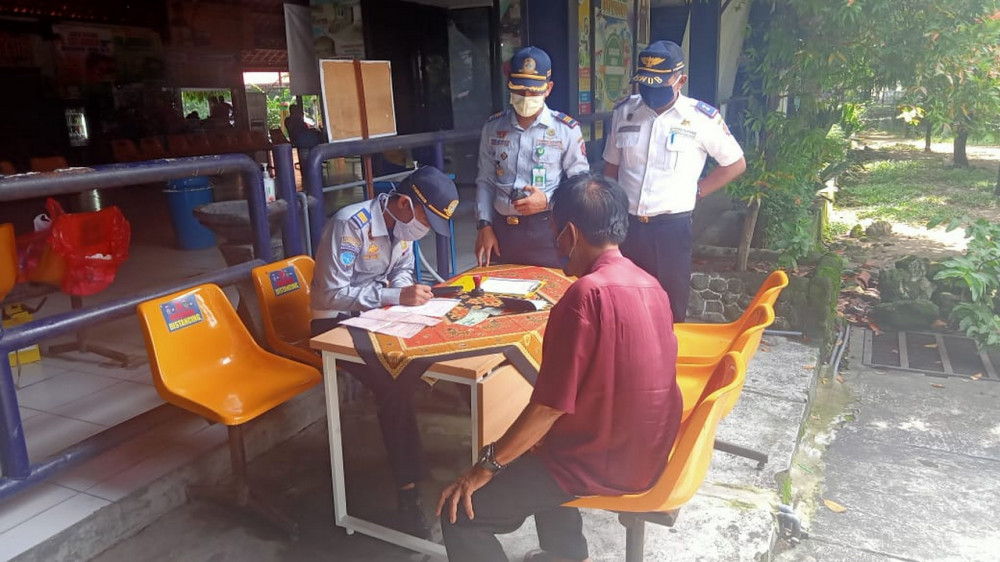 Dishub Bojonegoro saat laksanakan ramcek atau pemeriksaan fisik dan kelengkapan surat-surat, terhadap mobil penumpang umum (MPU) di Terminal Rajekwesi Bojonegoro. Rabu (16/12/2020) (foto: dani/beritabojonegoro)