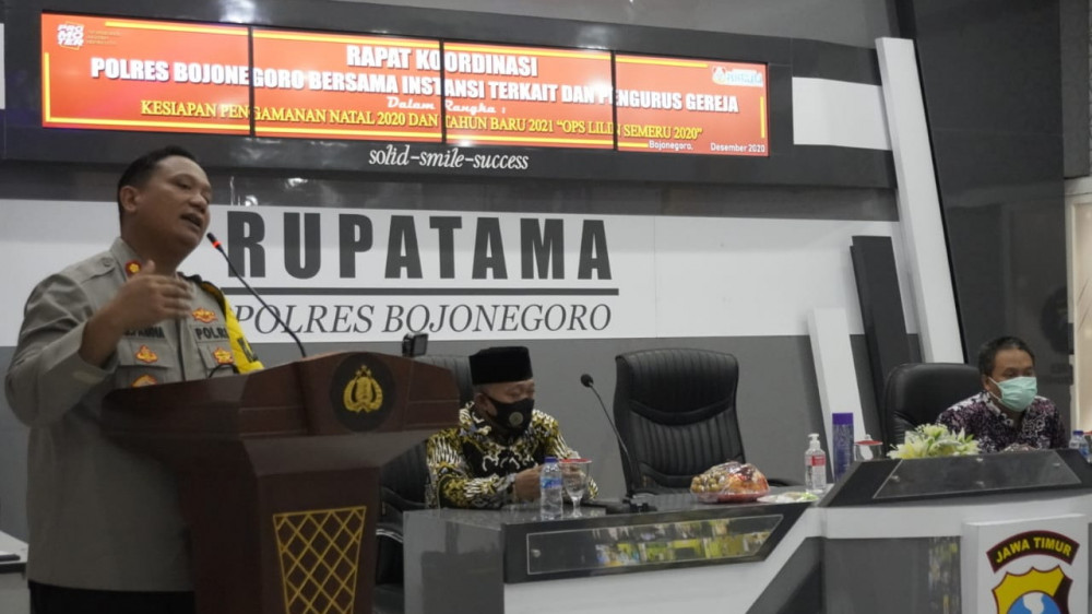 Kapolres Bojonegoro menyampaikan bahwa rakor tersebut bertujuan untuk membahas peningkatan pengamanan dan memetakan kerawanan serta untuk mengetahui kesiapsiagaan anggota dalam pengamanan perayaan Natal 2020 dan pergantian Tahun Baru 2021. Selain itu dalam rakor tersebut juga dibahas agenda beribadatan di gereja dalam situasi pandemi Covid-19.