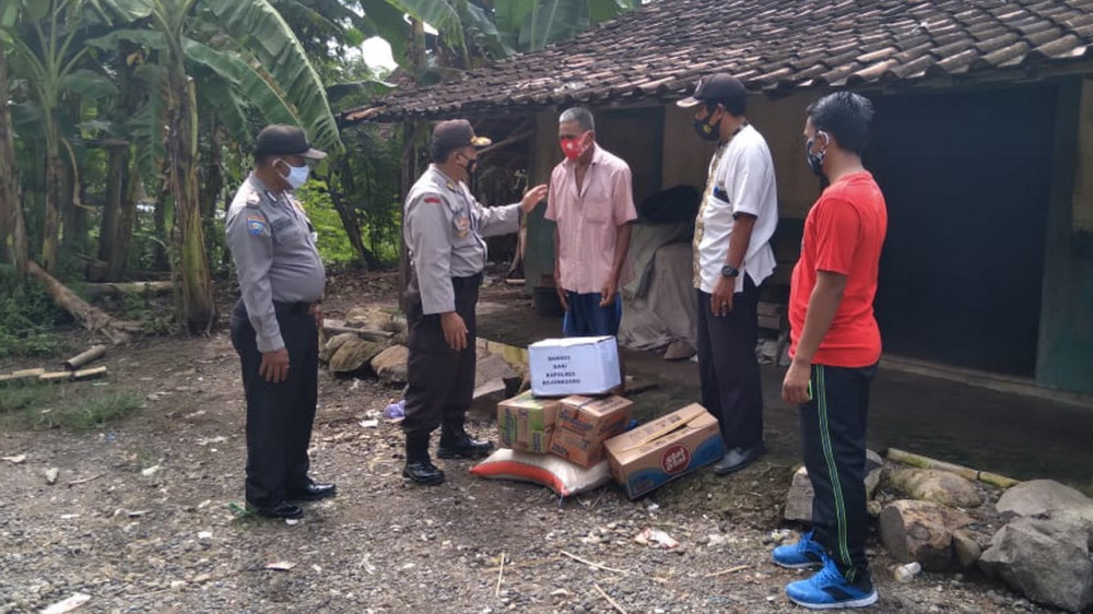 Dalam kegiatan tersebut, aparat kepolisian dengan didampingi perangkat desa setempat, memberikan bantuan sosial berupa paket sembako kepada keluarga tersebut.
