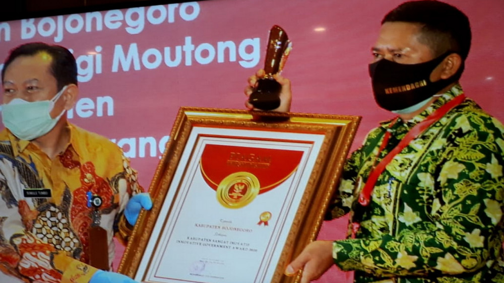 Bojonegoro - Kabupaten Bojonegoro, raih penghargaan dengan kategori sangat inovatif dari Kementerian Dalam Negeri dalam ajang Innovative Government Award (IGA) 2020, yang digelar Jumat (18/12/2020) di Jakarta.