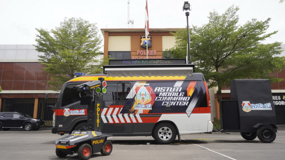 Kapolres menyampaikan bahwa Astuti Mobil Command Center ini juga dilengkapi perangkat elektronik tactical map game yang dapat digunakan untuk kegiatan portable zoom metting, dan pengendali robot yang dimiliki oleh Polres Bojonegoro yaitu BOBOTA (Robot Bojonegoro Tangguh) serta Drone yang berfungsi untuk pemantauan langsung dari udara.