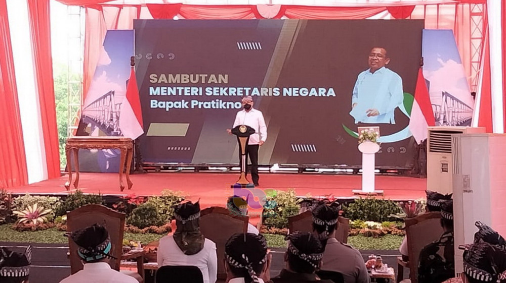 Mensesneg Pratikno, saat beri sambutan dalam peresmian Jembatan Terusan Bojonegoro-Blora (TBB), Minggu (03/01/2021). (foto: dan/beritabojonegoro)