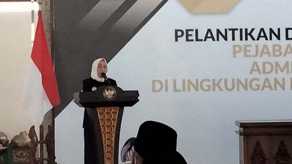Bupati Bojonegoro, Dr Hj Anna Muawanah, saat beri sambutan dalam pelantikan pejabat di lingkungan Pemerintah Kabupaten Bojonegoro. Senin (04/01/2020)
