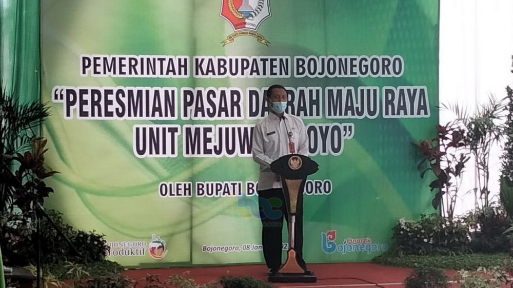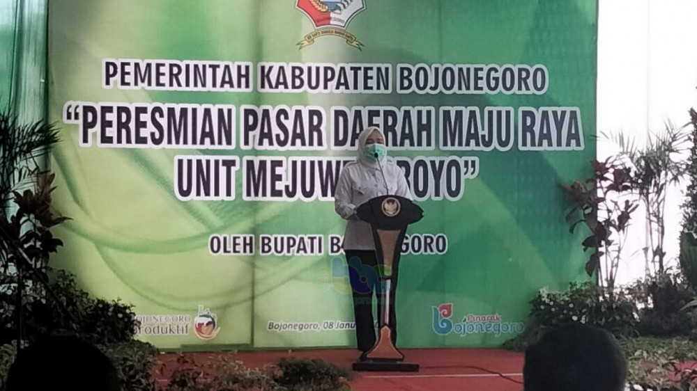 Bojonegoro - Bupati Bojonegoro, Dr Hj Anna Muawanah, pada Jumat (08/01/2021), resmikan pengoperasian Pasar Daerah Maju Raya Unit Mejuwet-Sroyo, yang berlokasi di Desa Sroyo Kecamatan Kanor, Kabupaten Bojonegoro.