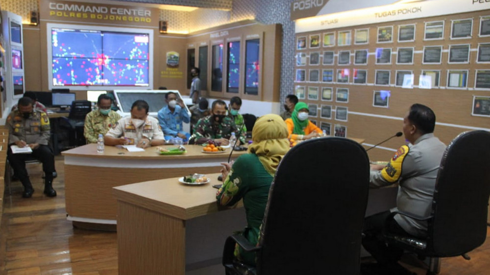 Kapolres Bojonegoro, mengawali sambutannya mengucapkan terima kasih kepada seluruh jajaran Tim Gugus Tugas Penanganan COVID-19 Kabupaten Bojonegoro, yang telah melakukan operasi yustisi dan iimbuan protokol kesehatan kepada masyarakat.