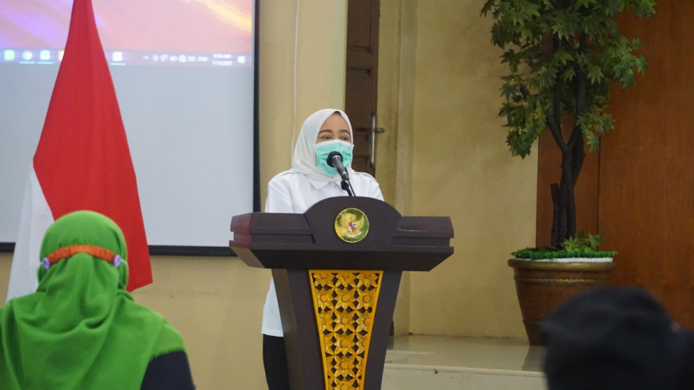Bupati Anna Muawanah, saat beri sambutan dalam seminar kebangsaan, di Ruang Angling Dharma Gedung Pemkab Bojonegoro. Kamis (14/01/2021) (foto: istimewa)