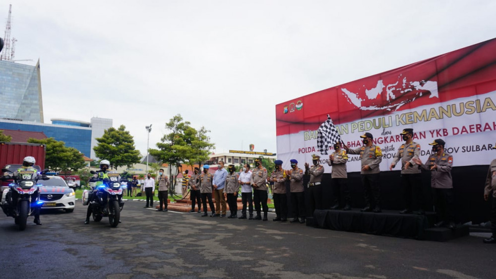 Surabaya - Kepolisian Daerah (Polda) Jawa Timur, pada Selasa (19/01/2021), berangkatkan bantuan sosial sebanyak 25.165 paket sembako, untuk korban bencana banjir di Kalimantan Selatan dan Bencana Gempa Bumi di Sulawesi Barat.