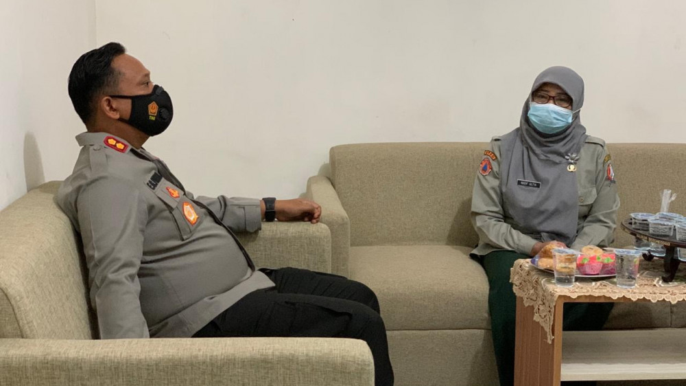 Kapolres Bojonegoro, AKBP Eva Guna Pandia SIK MM MH, saat laksanakan koordinasi dengan Kepala Pelaksanan BPBD Bojonegoro, Nadif Ulfia SSos. (foto: istimewa)