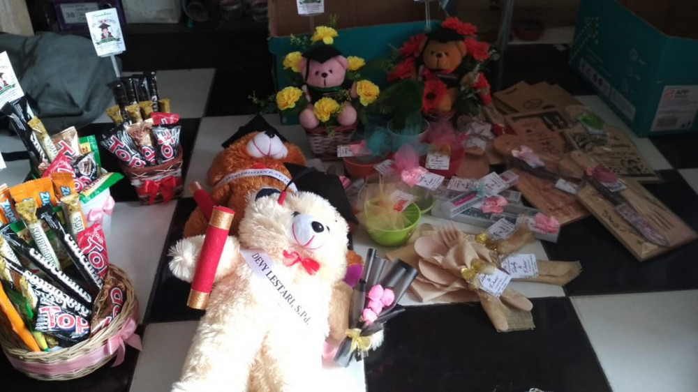 "Untuk harga buket menyesuaikan isinya, sedangkan untuk boneka, tergantung ukuran dan kerumitan hiasannya," kata Dwi.