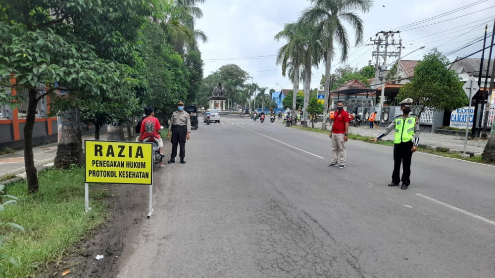 Blora - Sebagai upaya mencegah penyebaran COVID-19, petugas gabungan di Kabupaten Blora terus melakukan berbagai macam upaya. Selain kegiatan edukasi dan patroli imbauan protokol kesehatan, kegiatan operasi yustisi penegakkan protokol kesehatan juga gencar dilakukan.