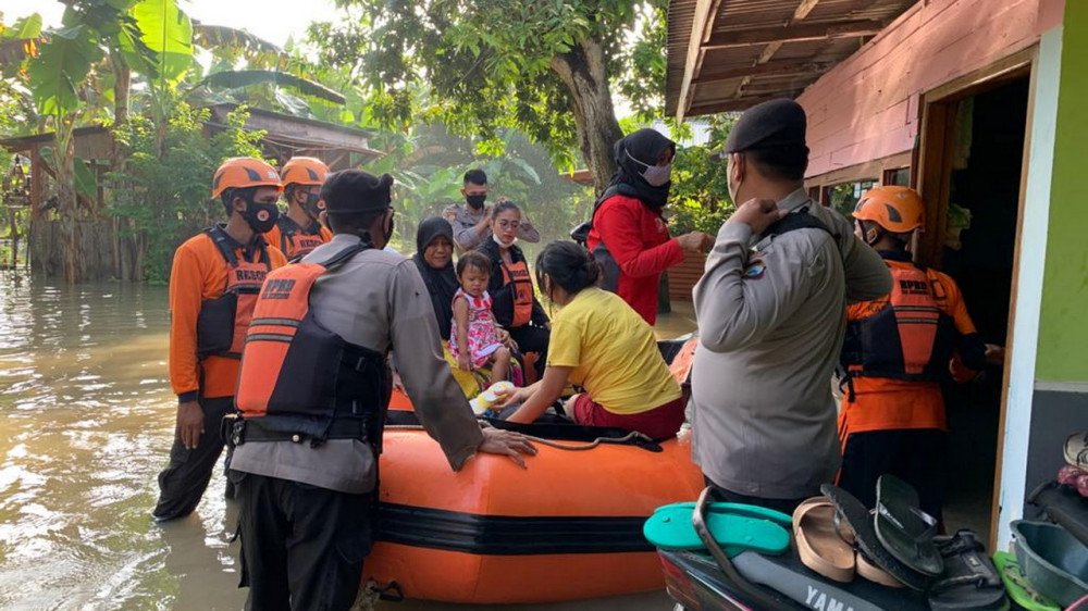 Dalam kegiatan tersebut, Polres Bojonegoro bersama BPBD Kabupaten Bojonegoro menerjunkan dua unit perahu karet yang untuk mengevakuasi warga terdampak banjir tersebut.
