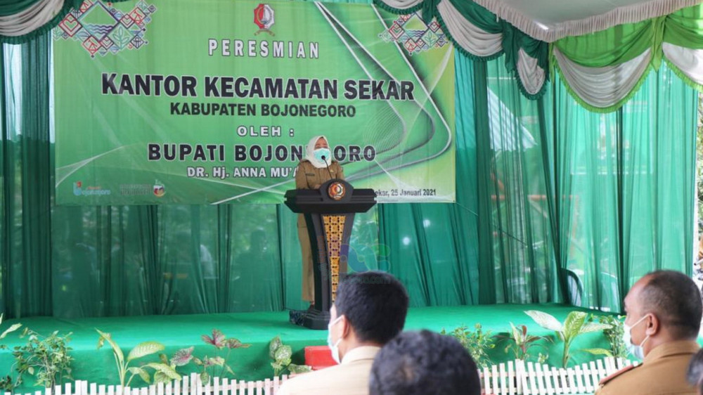 Bojonegoro - Bupati Bojonegoro Dr Hj Anna Muawanah pada Senin (25/01/2021) resmikan Kantor Kecamatan Sekar yang telah selesai direnovasi.
