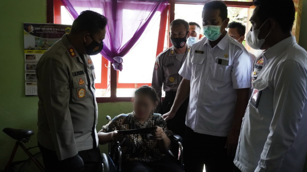 Dengan didampingi pejabat utama Polres Bojonegoro, Kapolsek Balen, dan kepala desa beserta perangkat desa setempat, Kapolres datang untuk memberikan bantuan kursi roda, pakaian, dan paket sembako pada korban pencabulan tersebut.