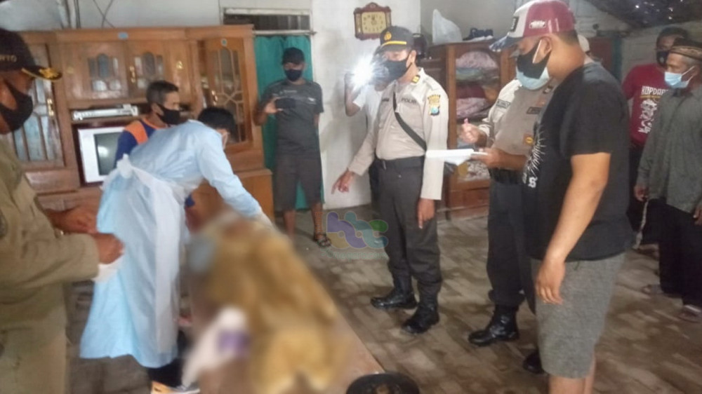 Petugas saat melakukan olah TKP meninggalnya Makruf (70), warga Desa Temayang Kecamatan Temayang, Kabupaten Bojonegoro. (foto: istimewa)