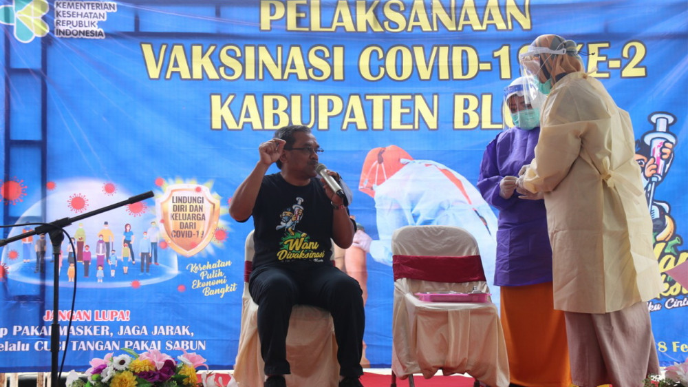 "Hari ini saya dapat suntikkan vaksin kedua. Sama dengan dua minggu lalu, tidak terasa," kata Bupati Blora Djoko Nugroho.