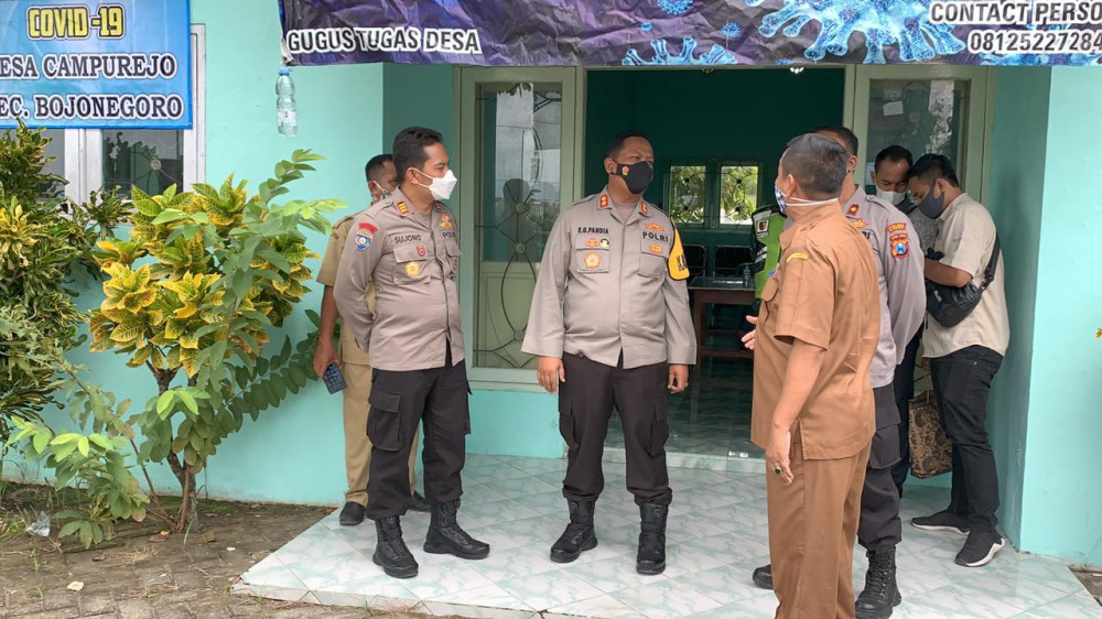 Bojonegoro - Kapolres Bojonegoro, AKBP Eva Guna Pandia SIK MM MH, pada Selasa (09/02/2021), bersama pejabat utama Polres Bojonegoro, Kapolsek Kota Bojonegoro, Kepala Desa Campurejo, Bhabinkamtibmas, Babinsa, dan bidan desa Campurejo, lakukan peninjauan Kampung Tangguh Semeru (KTS) di Desa Campurejo, Kecamatan Bojonegoro Kota, Kabupaten Bojonegoro.