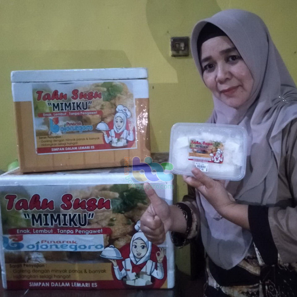 Dwi Resti (48) dengan tahu susu produksinya (foto: vera/beritabojonegoro.com)