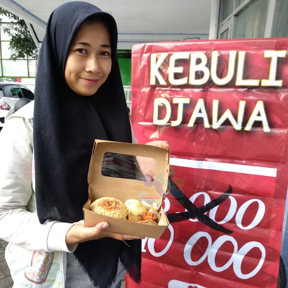 "Semua paket dilengkapi acar dan sambal. Harganya tergantung dari lauk-pauk yang dipilih oleh konsumen. Lauknya ada ayam goreng, ayam gongso, dan telur." kata Nofi Eka.