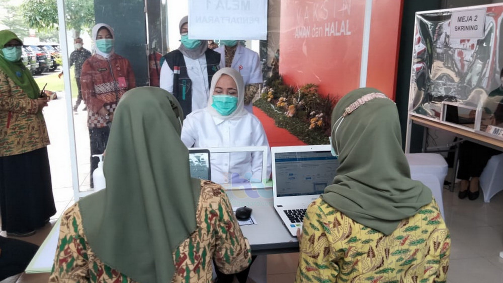 "Setelah vaksinasi tahap pertama dua minggu lalu, vaksinasi tahap kedua jatuh temponya hari ini." kata Bupati Anna Muawanah.