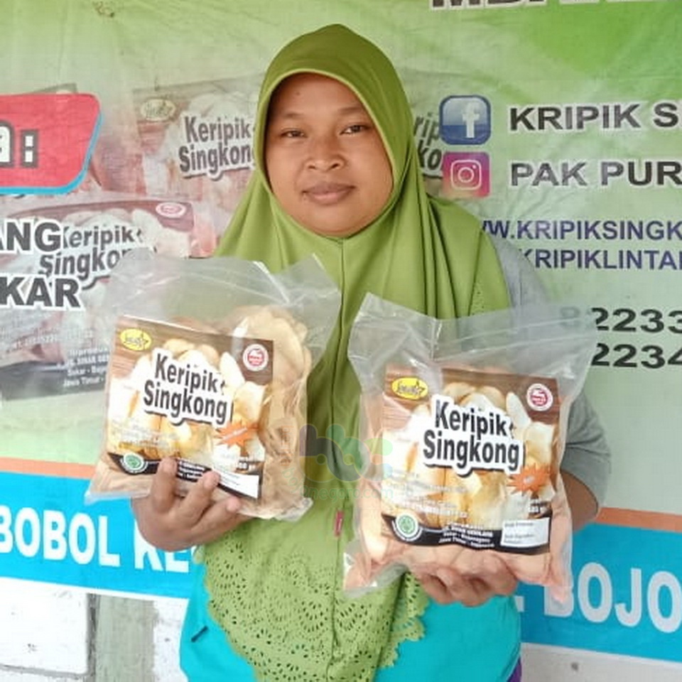 "Karena lewat galengan sawah jadi mobil tidak bisa. Distribusi penjualan keripik singkong harus dimuat sepeda motor," kata Purwo.