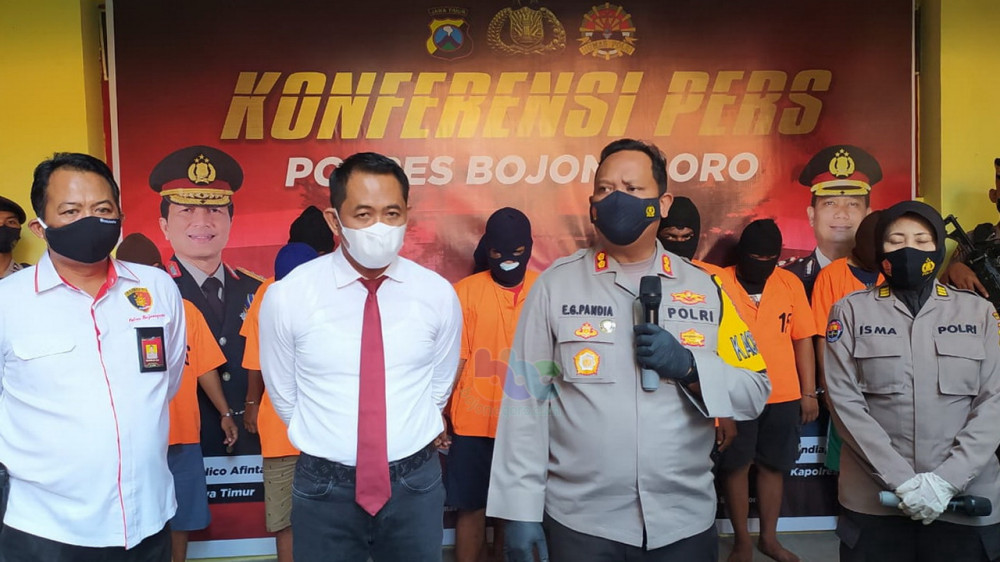 Kapolres Bojonegoro AKBP Eva Guna Pandia SIK MH MM, dalam konferensi pers di Mapolres Bojonegoro Senin (15/02/2021) mengungkapkan bahwa anggota jajarannya bersama Tim Kejahatan dan Kekerasan (Jatanras) Polda Jatim, Polres Sampang, dan juga Polres Karanganyar, berhasil mengamankan 7 orang tersangka pengeroyokan yang sebelumnya telah ditetapkan DPO.