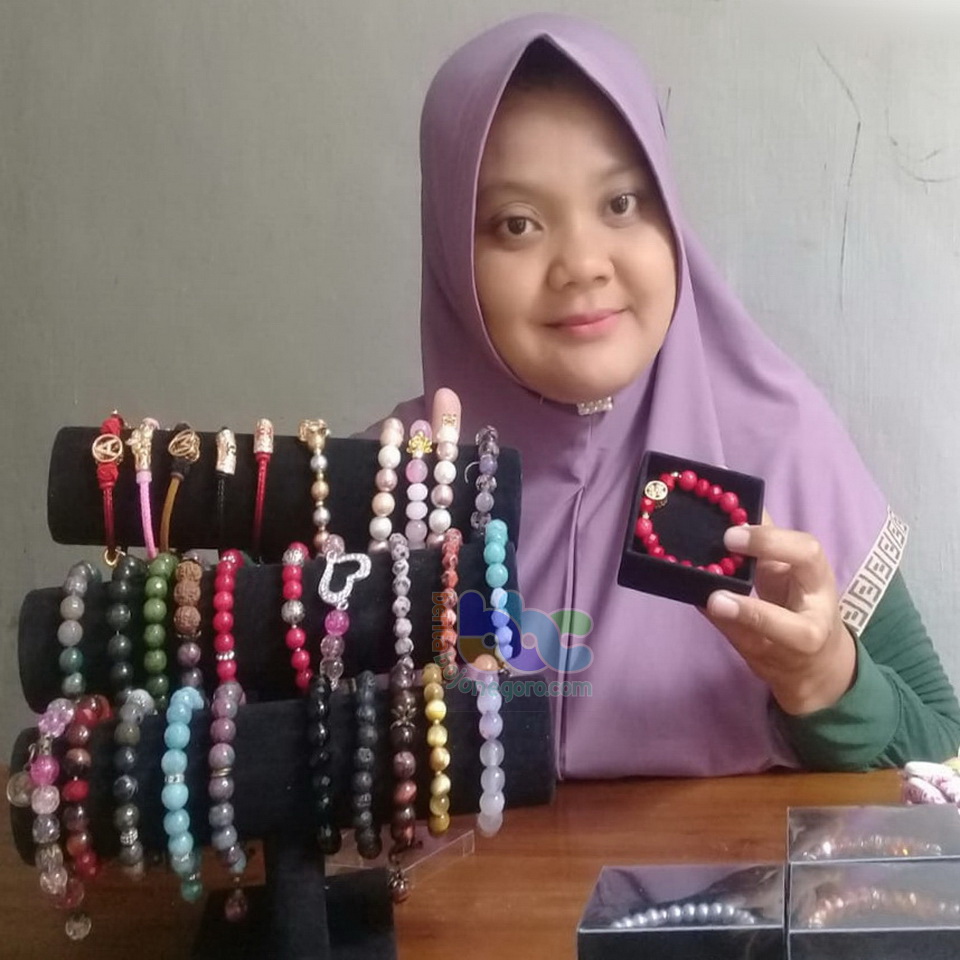 "Produk yang paling laku adalah gelang batu alam. Pelanggan yang membeli gelang, juga memesan konektor masker," kata Luluk.