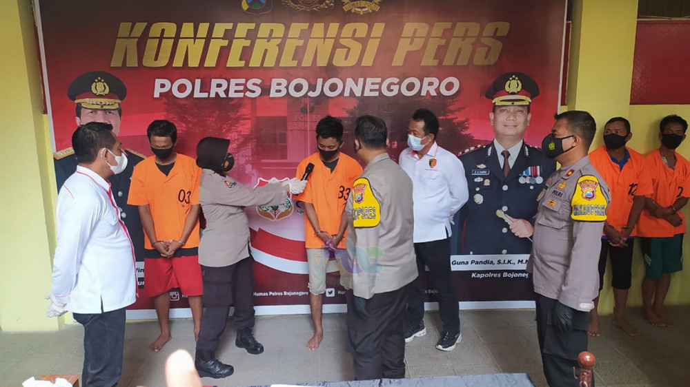 Bojonegoro - Dalam konferensi pers yang digelar pada Senin (22/02/2021) di Mapolres Bojonegoro, Kapolres Bojonegoro AKBP Eva Guna Pandia SIK MH MM, menyampaikan bahwa anggota jajarannya, telah menangkap 2 orang remaja, pelaku perampasan handphone (HP), dengan lokasi kejadian di jalan lingkungan di Desa Sumberrejo Kecamatan Sumberrejo Kabupaten Bojonegoro.