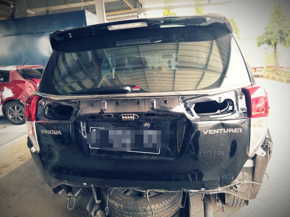Mobil warga Desa Sumurgeneng, Kecamatan Jenu, Kabupaten Tuban, yang alami kerusakan dan sedang diperbaiki di bengkel Auto2000 Cabang Tuban. (foto: istimewa)