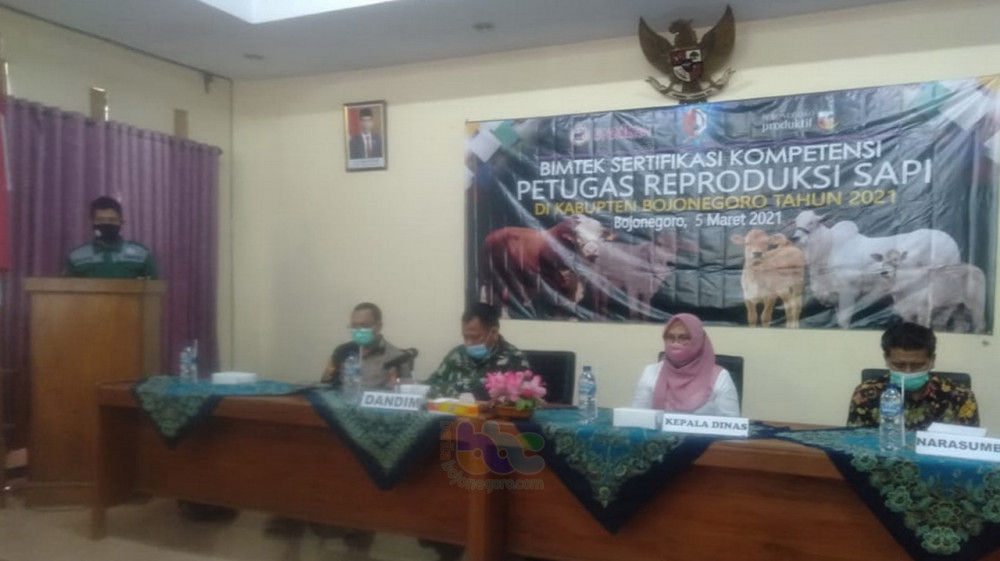 Bojonegoro - Pemerintah Kabupaten (Pemkab) Bojonegoro, melalui Dinas Peternakan dan Perikanan (Disnakan) Kabupaten Bojonegoro, pada Jumat (05/03/2021) menggelar bimbingan teknik (Bimtek) Sertifikasi Kompetensi Petugas Reproduksi Sapi
