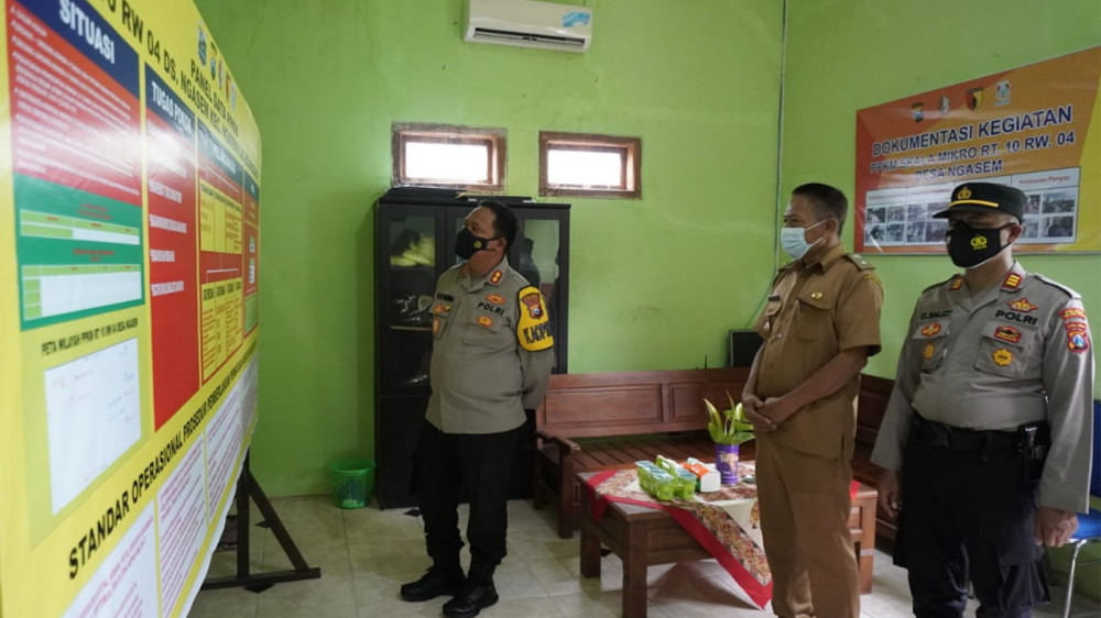 Bojonegoro - Kapolres Bojonegoro, AKBP Eva Guna Pandia SIK MM MH, pada Selasa (16/03/2021), laksanakan kunjungan ke Posko Pemberlakuan Pembatasan Kegiatan Masyarakat (PPKM) Skala Mikro, di Desa Ngasem, Kecamatan Ngasem, Kabupaten Bojonegoro.