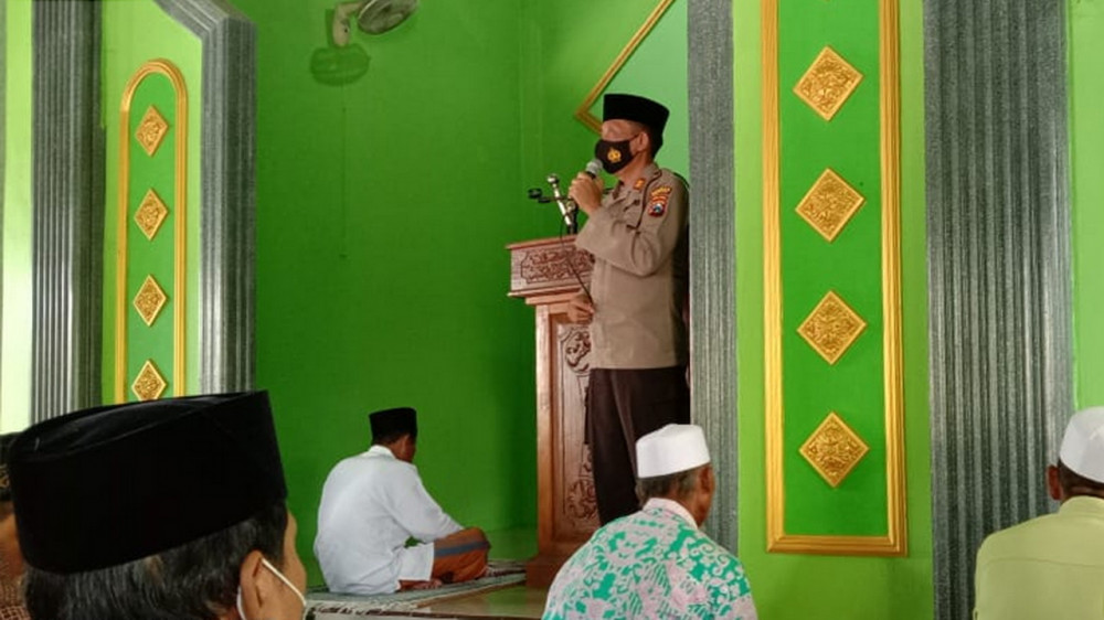Bojonegoro - Kapolsek Sumberrejo, Polres Bojonegoro, Ajun Komisaris Polisi (AKP) Imam Kanafi SH, pada Jumat (19/03/2021), laksanakan Safari Jumat di Masjid Ar-Rohman, di Desa Karangdinoyo, Kecamatan Sumberrejo, untuk memberikan pesan kamtibmas kepada warga dan jemaah salat Jumat.