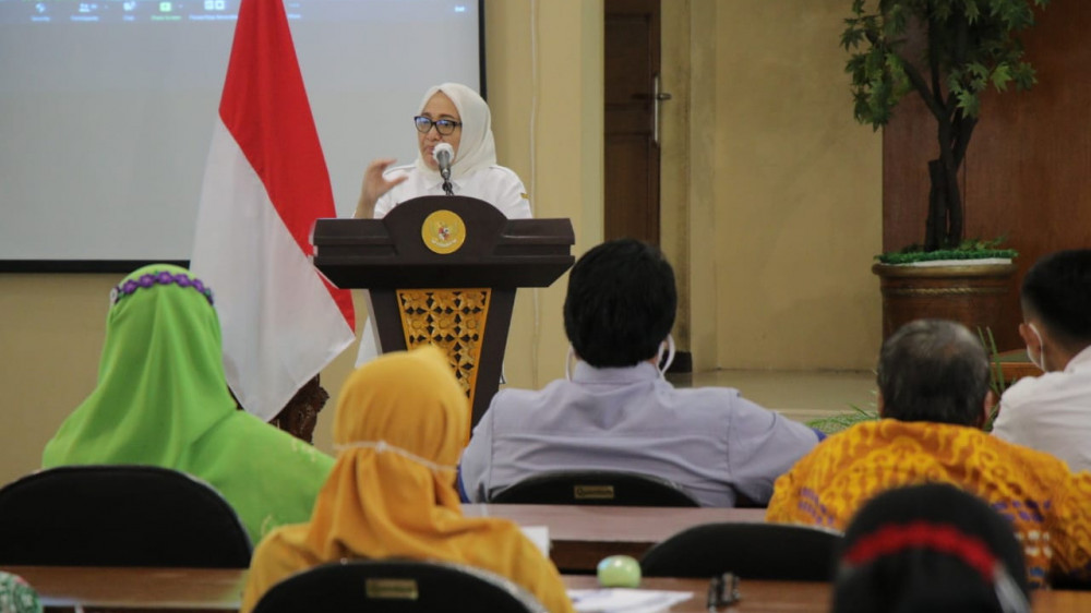 Bupati Bojonegoro, Anna Muawanah, saat beri smbutan dalam acara Musrenbang tahun 2022. Rabu (31/03/2021) (foto: istimewa)