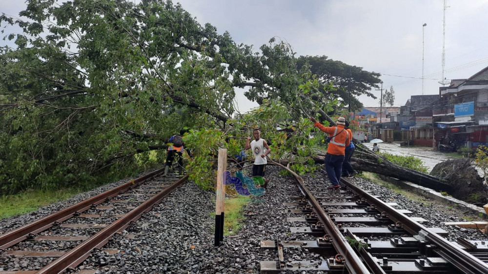 "Pohon tumbang tersebut selesai ditangani sekira pukul 14.45 WIB. Perjalanan kereta api yang terhambat kembali lancar dan jalur dapat dilalui kembali." kata Yudi Hendro Kartono. (red/imm)