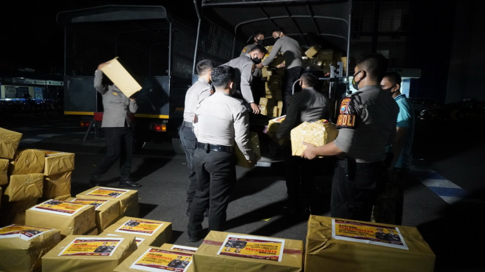 Bojonegoro - Sebagai bentuk kepedulian terhadap korban bencana alam banjir dan tanah longsor yang melanda sejumlah wilayah di Nusa Tenggara Timur (NTT), yang terjadi pada hari Minggu (04/04/2021) kemarin, jajaran Polres Bojonegoro mengirimkan bantuan sebanyak 200 paket.