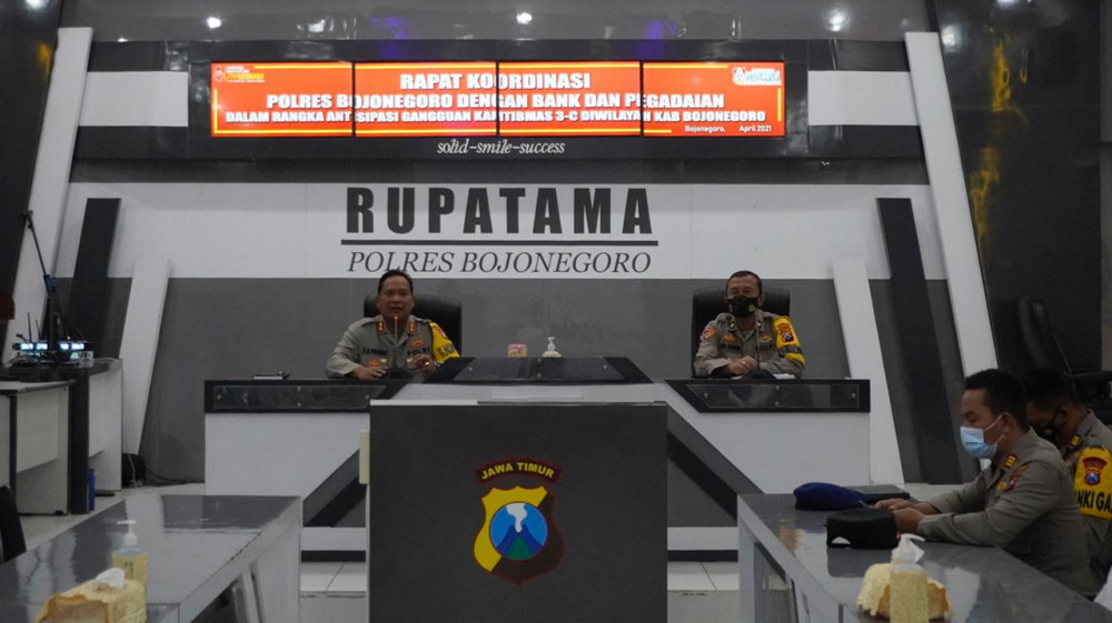 Bojonegoro - Kepolisian Resort (Polres) Bojonegoro, pada Senin (19/04/2021), menggelar rapat koordinasi (Rakor) dengan pimpinan bank dan pegadaian di Kabupaten Bojonegoro.