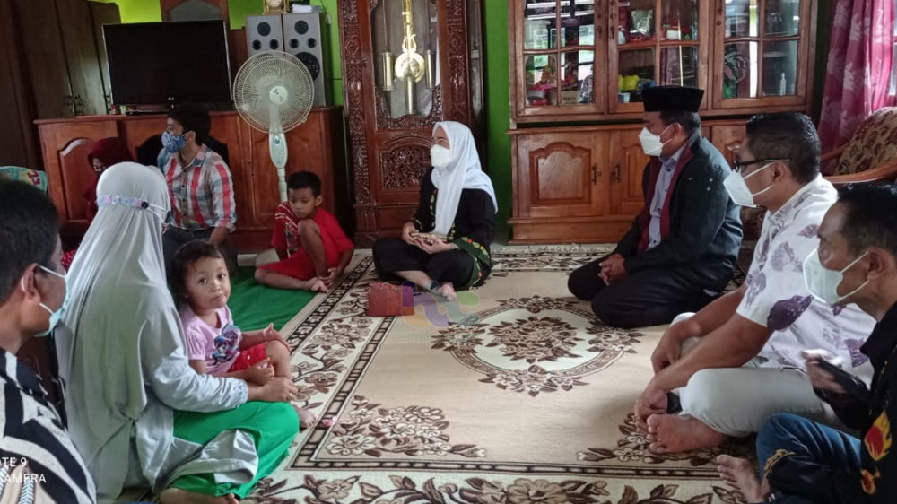 Bupati Bojonegoro Anna Muawanah bersama suaminya, Ali Dupa, saat berkunjung di rumah istri Kopda Khoirul Faizin, di Kecamatan Dander. Minggu (25/04/2021) (foto: dan/beritabojonegoro)