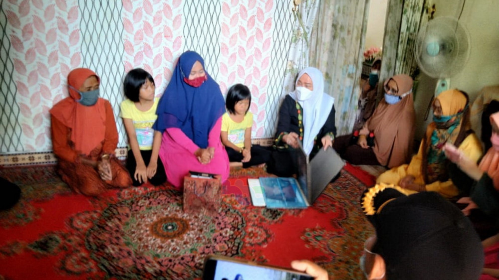 Bupati Bojonegoro Anna Muawanah bersama suaminya, Ali Dupa, saat berkunjung di rumah istri Serda Setyo Wawan, di Kecamatan Tambakrejo. Minggu (25/04/2021) (foto: dan/beritabojonegoro)