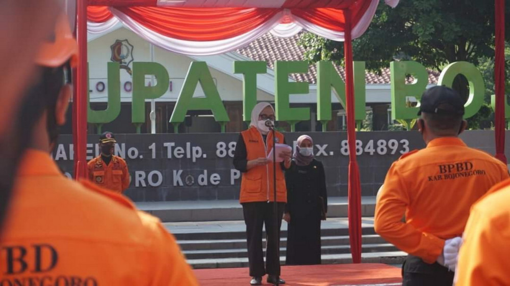 Apel yang digelar di Jalan Mas Tumapel, depan Pendopo Pemkab Bojonegoro tersebut dipimpin oleh Bupati Bojonegoro Anna Muawanah, dihadiri jajaran Forkopimda Bojonegoro, Sekda Bojonegoro, Kepala Pelaksana BPBD Bojonegoro, jajaran Kepala OPD Pemkab Bojonegoro, dan diikuti oleh anggota TNI, Polri, Satpol PP, Linmas serta para relawan