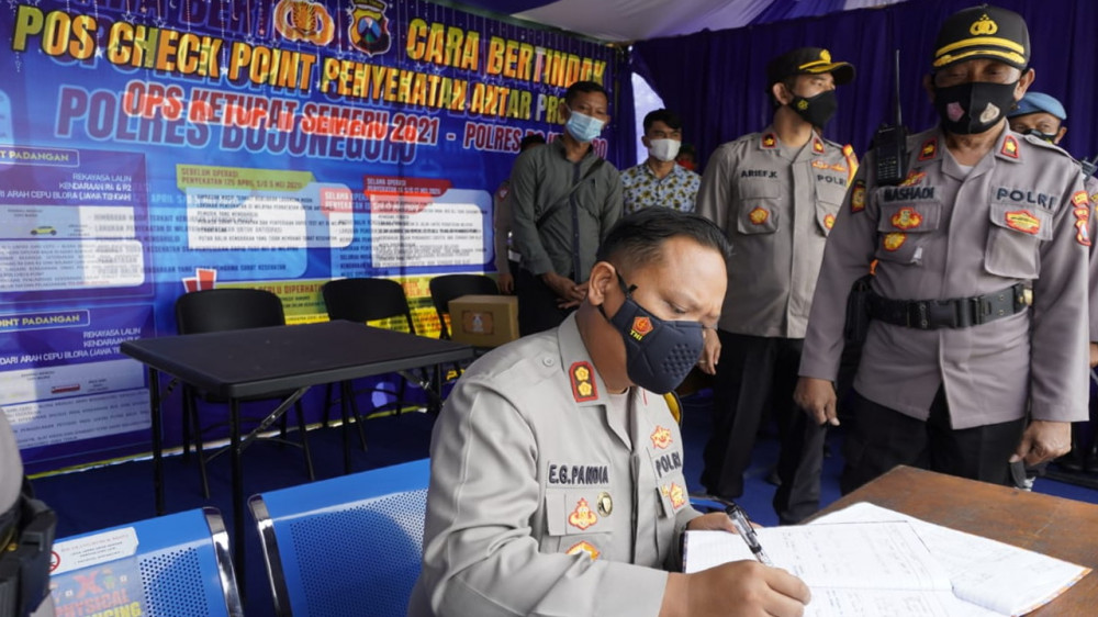 Kapolres Bojonegoro, AKBP EG Pandia menjelasakan bahwa sebagai upaya mendukung kebijakan pemerintah terkait larangan mudik lebaran, Polres Bojonegoro telah mendirikan pos penyekatan di tiga lokasi, yaitu Pos Penyekatan Gondang yang berbatasan dengan Kabupaten Nganjuk, Pos Penyekatan Margomulyo yang berbatasan dengan Kabupaten Ngawi, dan Pos Penyekatan Padangan yang berbatasan dengan Kabupaten Blora, Jawa Tengah.