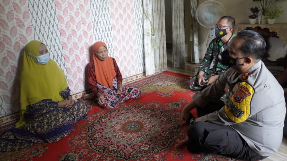 Bojonegoro - Kapolres Bojonegoro AKBP Eva Guna Pandia SIK MM MH bersama Dandim Bojonegoro, Letkol Inf Bambang Hariyanto, pada Jumat (30/04/2021) sambangi rumah salah satu prajurit Kapal Selam KRI Nanggala-402 yang telah gugur dalam pelaksanaan tugas, Kopda Khoirul Faizin, di Desa Ngraseh, Kecamatan Dander Kabupaten Bojonegoro,