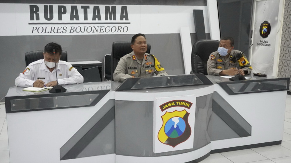 Rakor tersebut dipimpin Kapolres Bojonegoro, AKBP EG Pandia, dihadiri perwakilan dari Kodim Bojonegoro; Kepala Dinas Pemberdayaan Masyarakat dan Desa (PMD) Kabupaten Bojonegoro, Machmuddin; Kepala Dinas Perindustrian dan Tenaga Kerja (Perinaker) Kabupaten Bojonegoro, Welly Fitrama; Kepala Bidang Pengendalian dan Pemberantasan Penyakit, Dinkes Bojonegoro, dr Whenny Dyah Prajanti; Satpol PP, PT KAI Bojonegoro, Terminal Rajekwesi, dan tamu undangan lainnya.