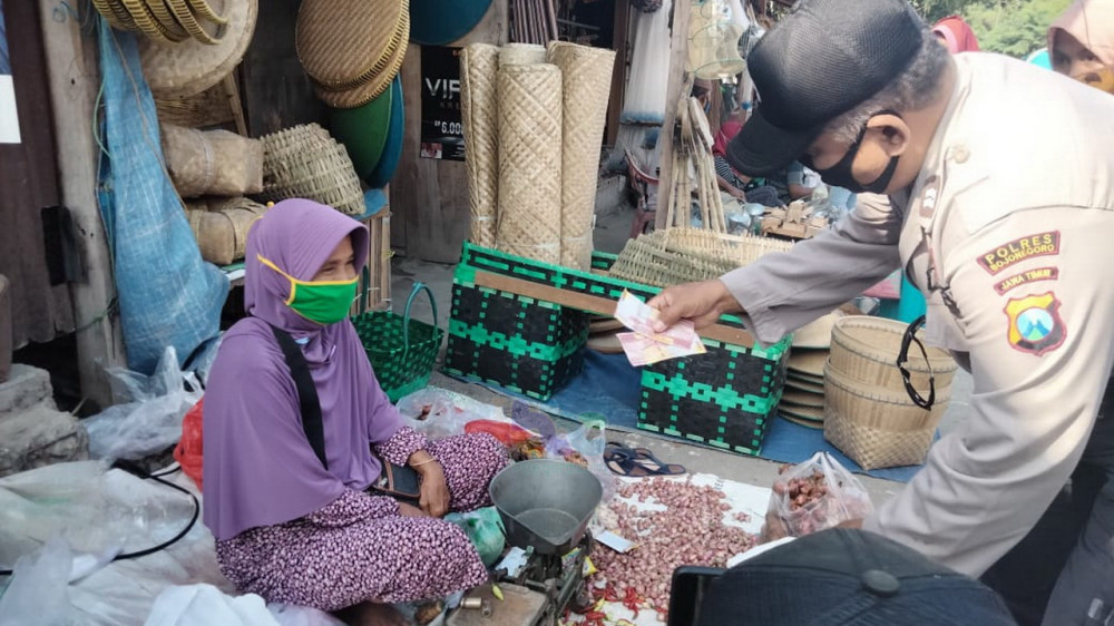 Petugas saat terima laporan adanya peredaran uang palsu dri pedagang di Pasar Desa Temayang, Kecamatan Temayang, Kabupaten Bojonegoro. Senin (10/05/2021) (foto: dan beritabojonegoro)