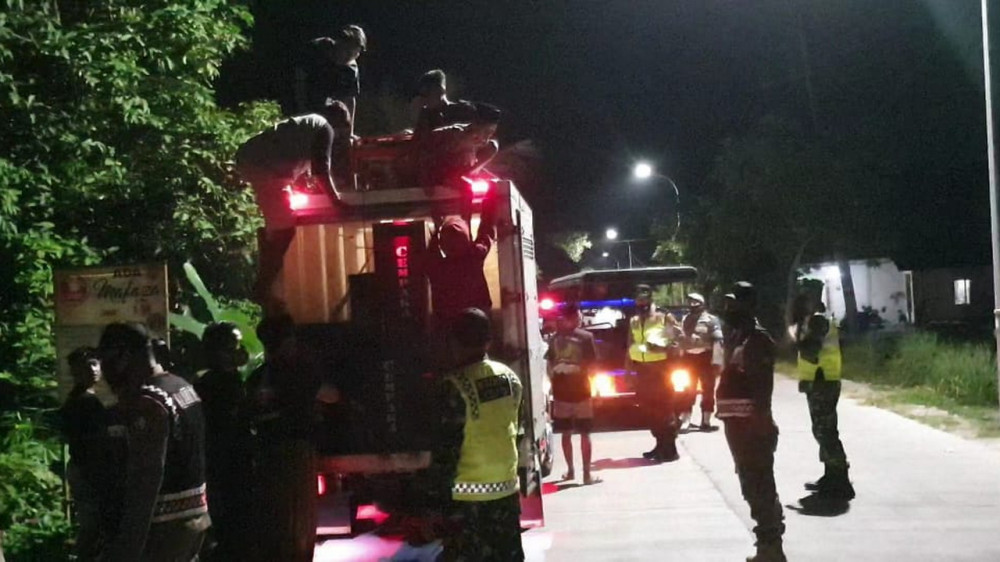 Aparat saat membubarkan anak-anak dan remaja yang menggelar takbir keliling di wilayah Kecamatan Kapas, Kabupten Bojonegoro. Rabu (12/05/2021) malam. (foto: istimewa)