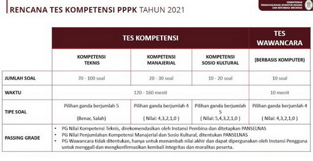 Rencana Tes Kompetensi PPPK Tahun 2021