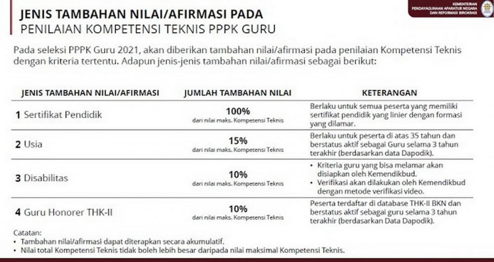 Jenis Tambahan Nilai atau Afirmasi pada Penilaian Kompetensi Teknis PPPK Guru