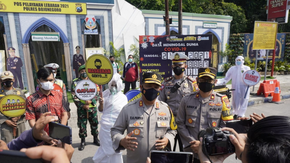 "Kami terus lakukan sosialisasi bahaya dari COVID-19 agar masyarakat semakin disiplin dalam mematuhi protokol kesehatan. Apalagi ada varian baru virus Corona, " kata Kapolres Bojonegoro, AKBP EG Pandia.