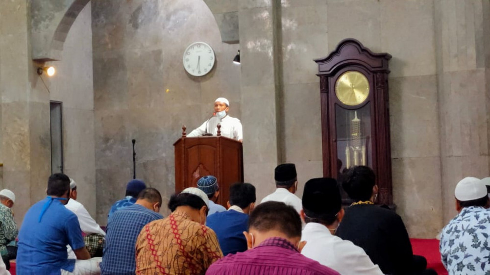 Katib salat gerhana bulan di Masjid At-Taqwa di Jalan Teuku Umar, Bojonegoro, saat memberikan kutbah. Rabu (26/05/2021) (foto: istimewa)