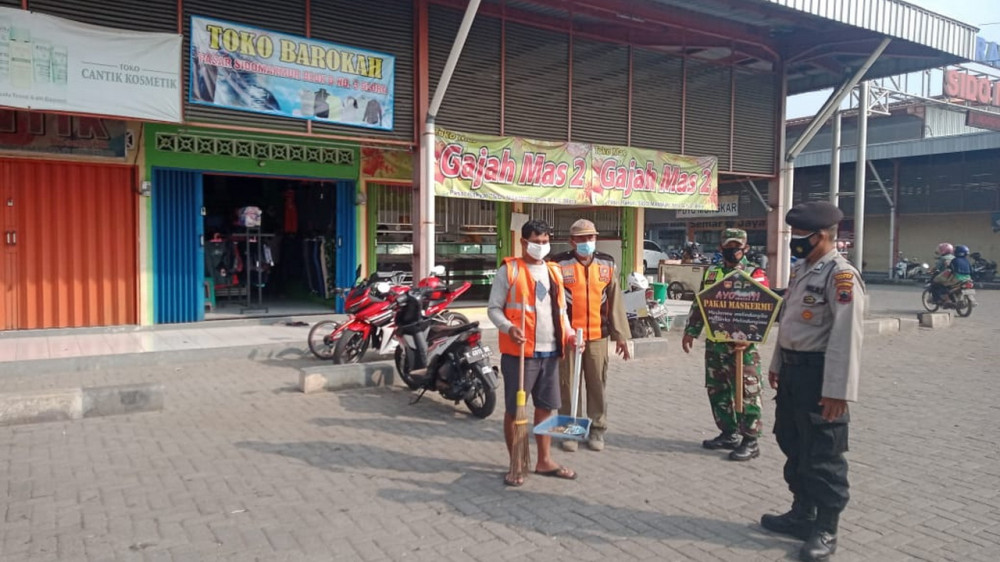 Petugas gabungan saat gelar Operasi Yustisi Penegakan Protokol Kesehatan COVID-19, di Pasar Sido Makmur, Kabupaten Blora. Selasa (01/06/2021) (foto: priyo/beritabojonegoro)