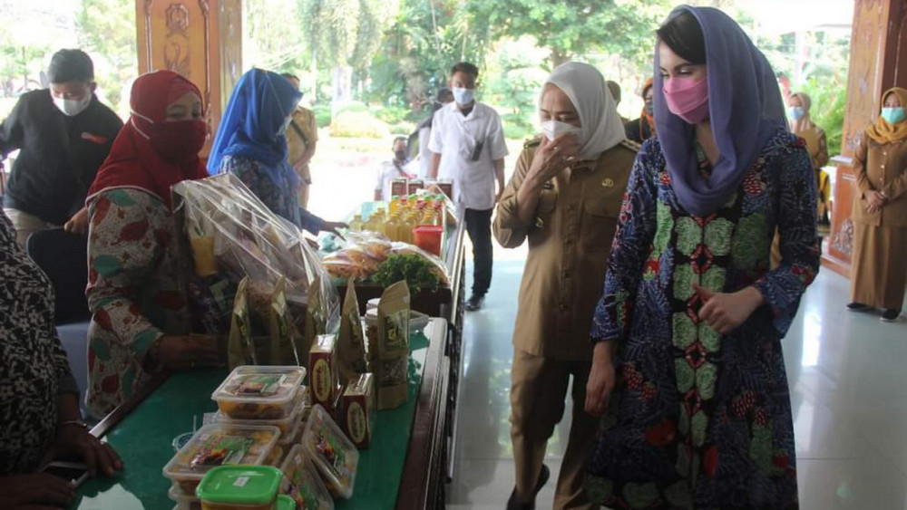 Ketua Dekranasda Jatim, Arumi Bachsin Emil Dardak SE, saat kunjungi pameran produk UMKM di Pendopo Pemkab Bojonegoro. Senin (07/06/2021) (foto: istimewa)