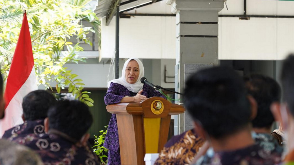 Bupati Bojonegoro Anna Muawanah, saat beri sambutan dalam acara Penyuluhan Hukum terkait Pencegahan Perkawinan Usia Dini dan Penghapusan KDRT, di Kecamatan Kepohbaru. Kamis (10/06/2021) (foto: istimewa)